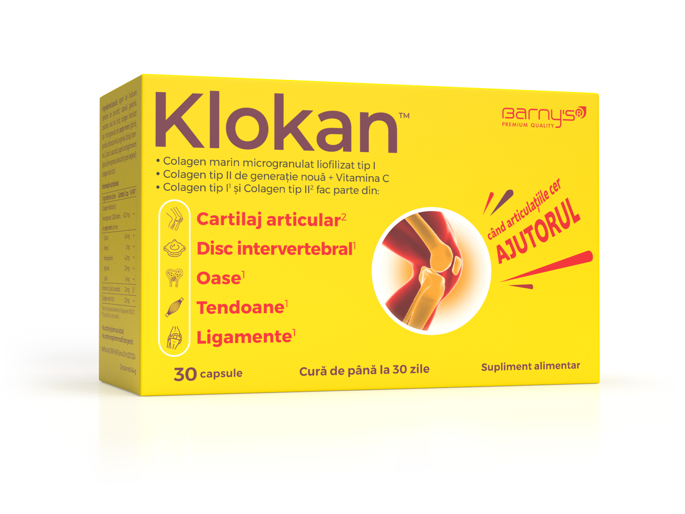 Vă recomandăm Barny’s® Klokan™ cu un conținut atent dozat de colagen marin liofilizat și hidrolizat tip I, colagen tip II de generație nouă și vitamina C, pentru confort și mobilitate sporite.